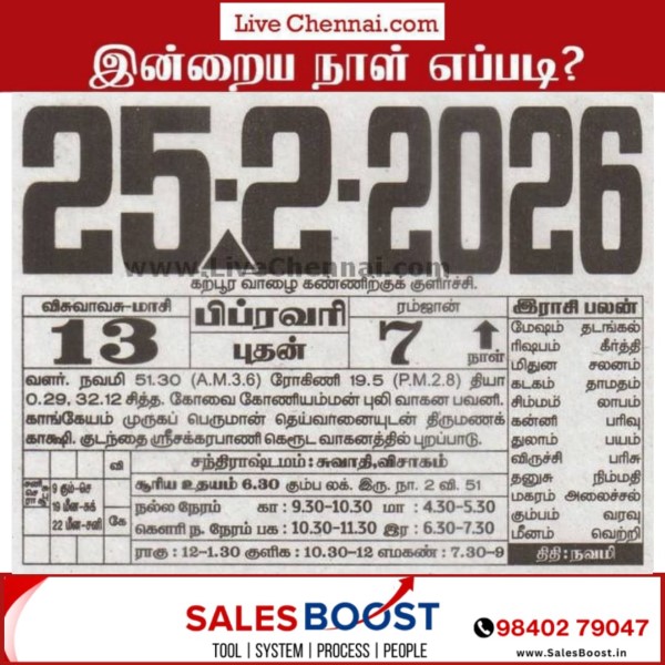 | February 25, 2026 – Wednesday | Masi 14 | Visuvavasu Year | |||