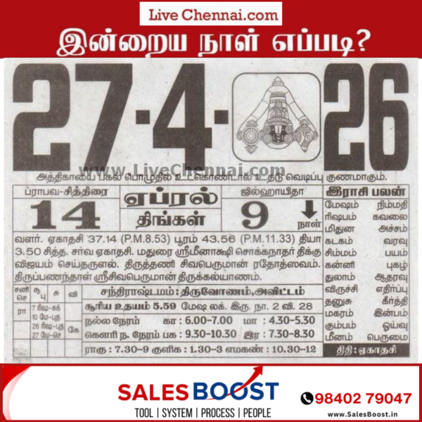 | April 27, 2026 – Monday | Chithirai 14 | Parabhava Year | |||