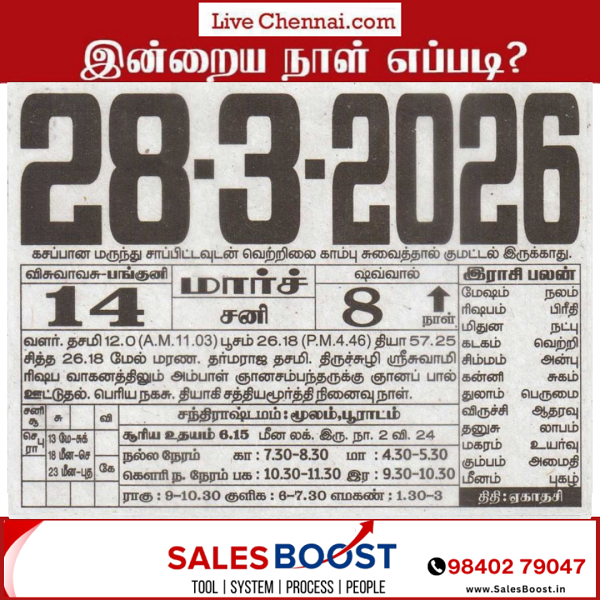 March 28, 2026 – Saturday | Panguni 14 | Visuvavasu Year