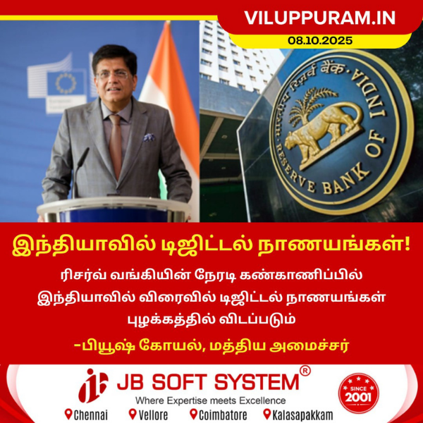 ரிசர்வ் வங்கியின் நேரடி கண்காணிப்பில் இந்தியாவில் விரைவில் டிஜிட்டல் நாணயங்கள் புழக்கத்தில் விடப்படும் – பியூஷ் கோயல், மத்திய அமைச்சர்