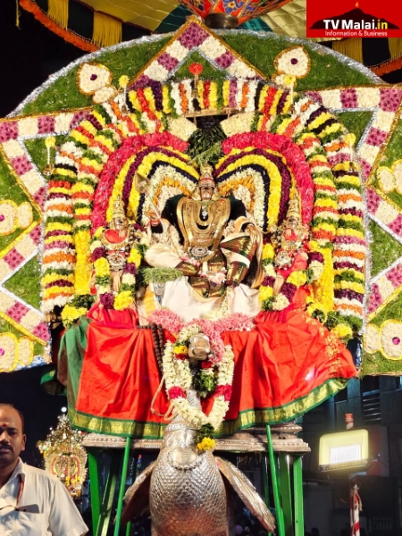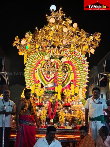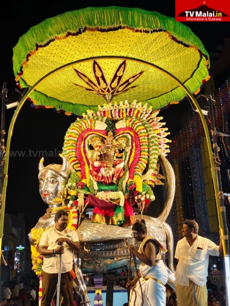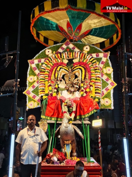 திருவண்ணாமலை அண்ணாமலையார் திருக்கோயிலில் திருக்கார்த்திகை தீபத்திருவிழா நான்காம் நாளான நேற்று (27.11.2025) இரவு பஞ்ச மூர்த்திகளான விநாயகர் வெள்ளி மூஷிக வாகனத்திலும், வள்ளி தெய்வானையுடன் சுப்பிரமணியர் வெள்ளி மயில் வாகனத்திலும், உண்ணாமலை அம்மன் சமேத அருணாசலேஸ்வரர், கற்பக விருட்சம் வாகனத்திலும், பராசக்தி அம்மன் வெள்ளி காமதேனு வாகனத்திலும், சண்டிகேஸ்வரர் வெள்ளி ரிஷப வாகனத்திலும், மாட வீதி உலா வந்து பக்தர்களுக்கு அருள்பாலித்தார்கள்.