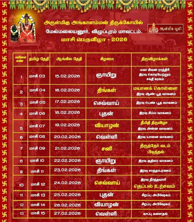 மேல்மலையனூர் அங்காளம்மன் மாசி திருவிழா 2026!