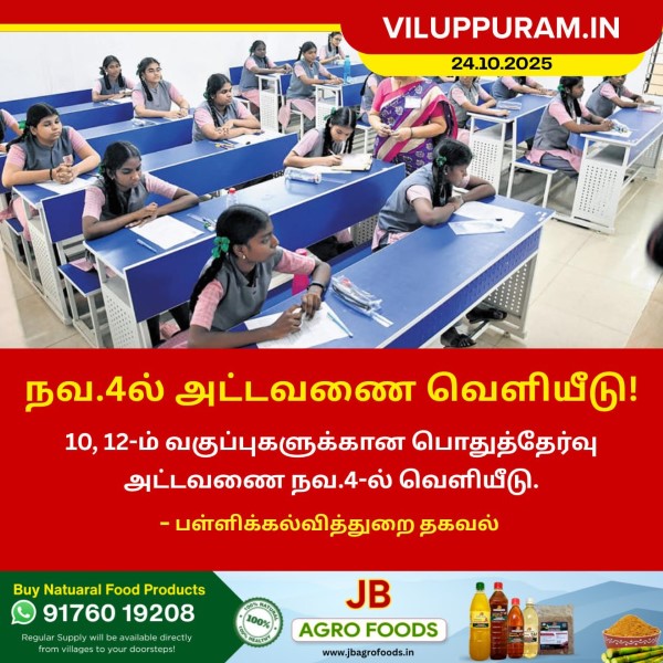 10, 12-ம் வகுப்புகளுக்கான பொதுத்தேர்வு அட்டவணை நவ.4-ல் வெளியீடு. – பள்ளிக்கல்வித்துறை தகவல்.