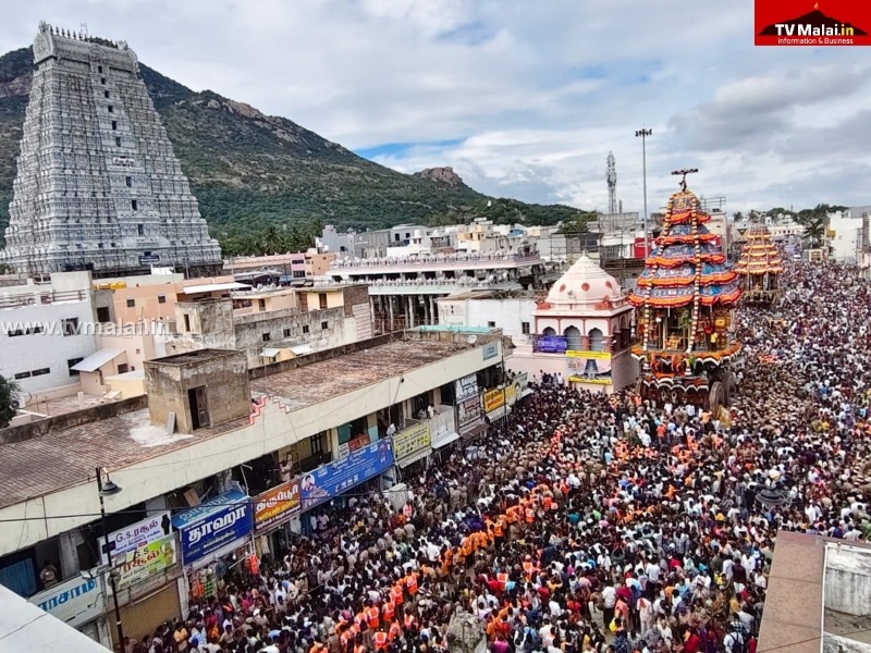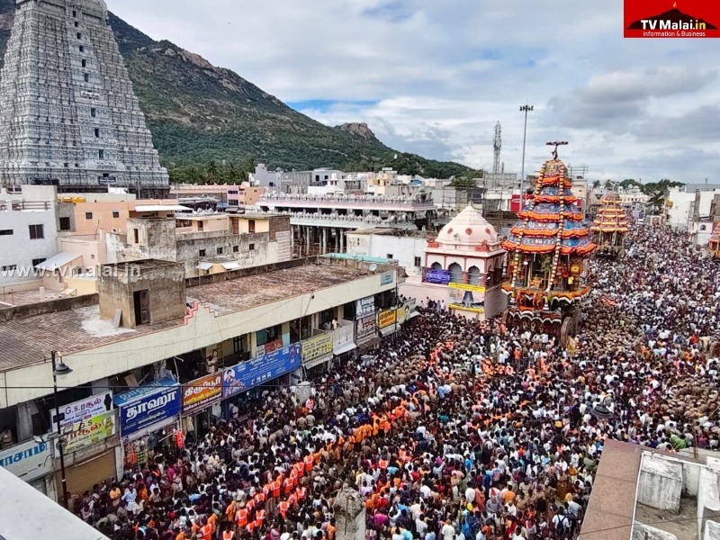 திருவண்ணாமலை அண்ணாமலையார் திருக்கோவிலில் கார்த்திகை தீபத் திருவிழா ஏழாம் நாள் பஞ்ச மூர்த்திகள் நாள் மகா தேரோட்டம் நடைபெற்றது. இதில் இலட்சக்கணக்கான பக்தர்கள் கலந்து கொண்டே தேரை வடம் பிடித்து இழுத்து சென்றனர். பத்தாம் நாளான புதன்கிழமை (03.12.2025) அன்று அதிகாலை 04:00 மணிக்கு பரணி தீபமும், அன்று மாலை 06:00 மணியளவில் 2,668 அடி உயரம் உள்ள அண்ணாமலை உச்சியில் மகா தீபம் ஏற்றப்பட உள்ளது.